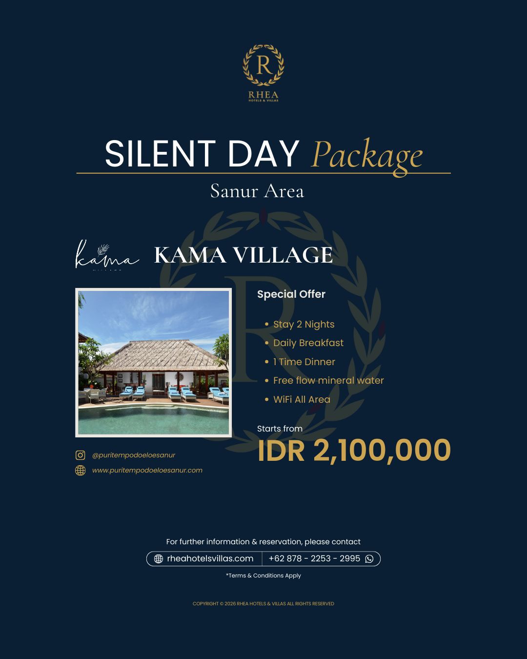 Silent Day package, please book directly with us. Reserve your stay via: